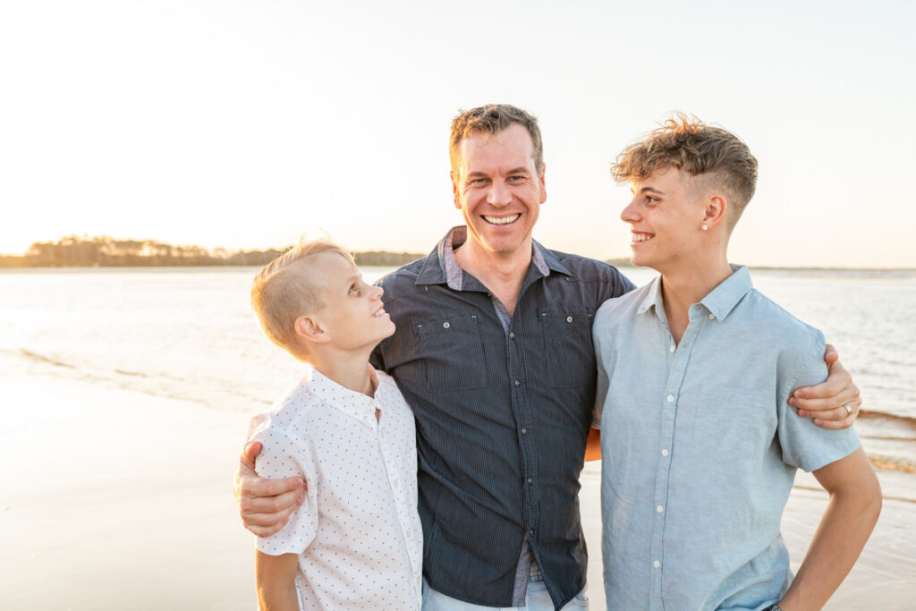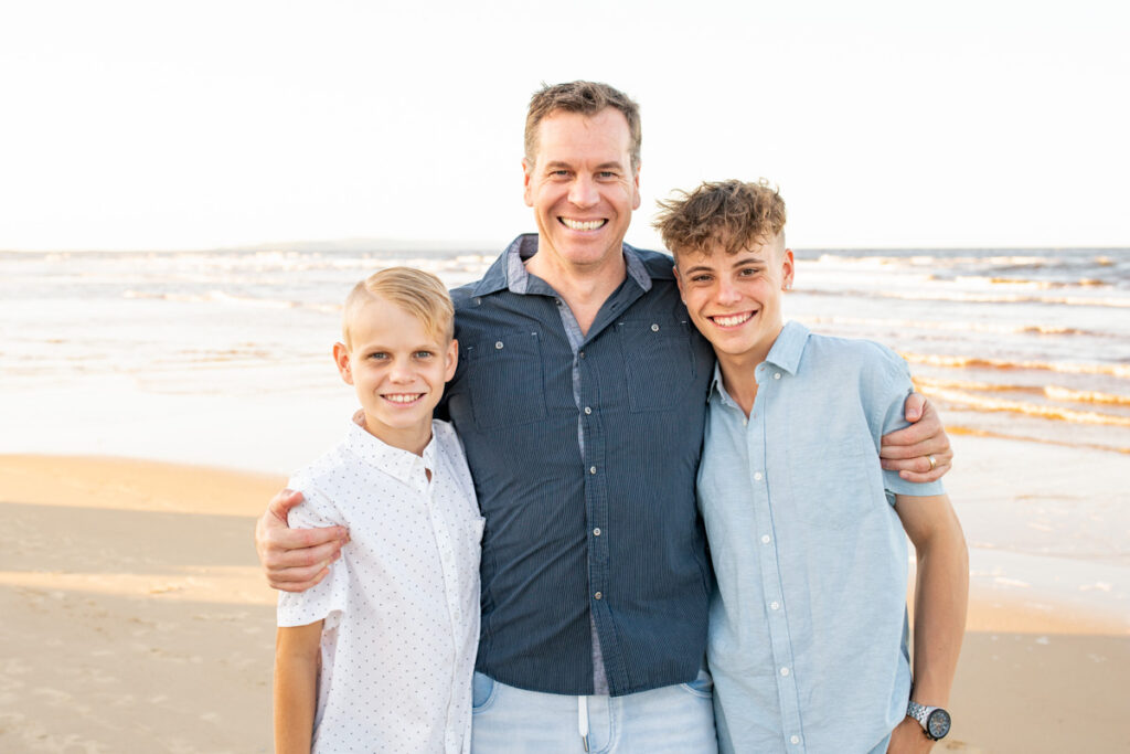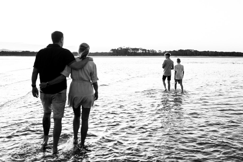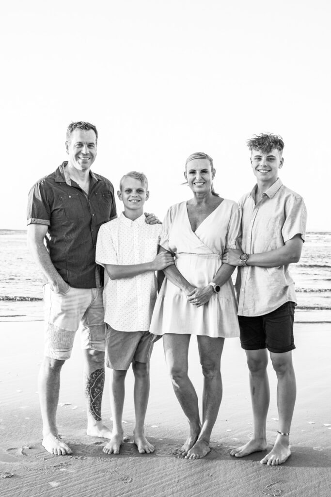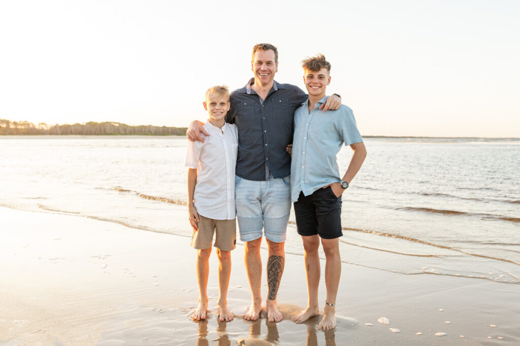This family of four chose Noosa to mark a birthday and celebrate together and the timing could not have been more perfect. Mum, dad and their two teenage boys, all of them relaxed, all of them completely themselves and that golden Noosa sunset doing everything it was supposed to behind them.