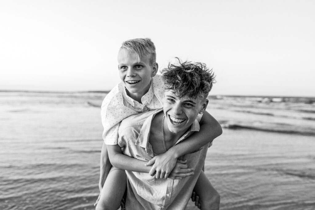 Teenage boys are not always the most enthusiastic participants in a family photoshoot. These two were brilliant. The piggybacks, the messing around in the shallows, the quiet moments between brothers and the genuine smiles that came when nobody was trying too hard. The gallery has a warmth and an ease that reflects exactly how the evening felt.