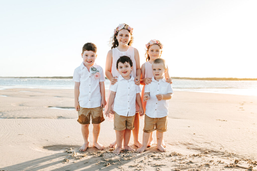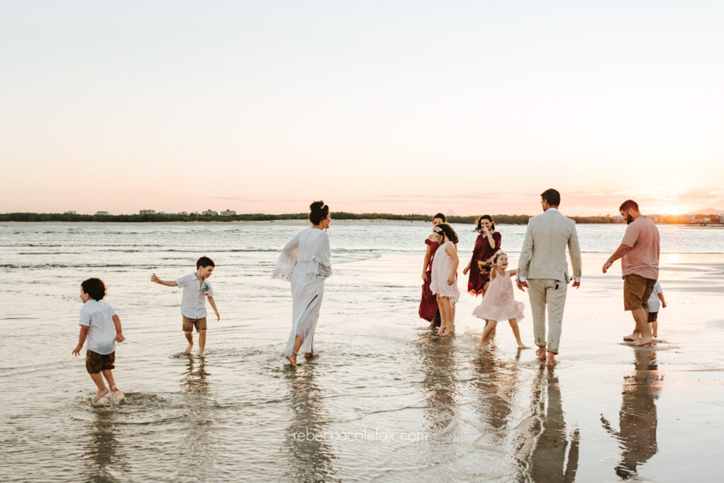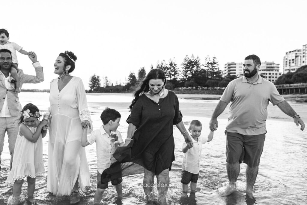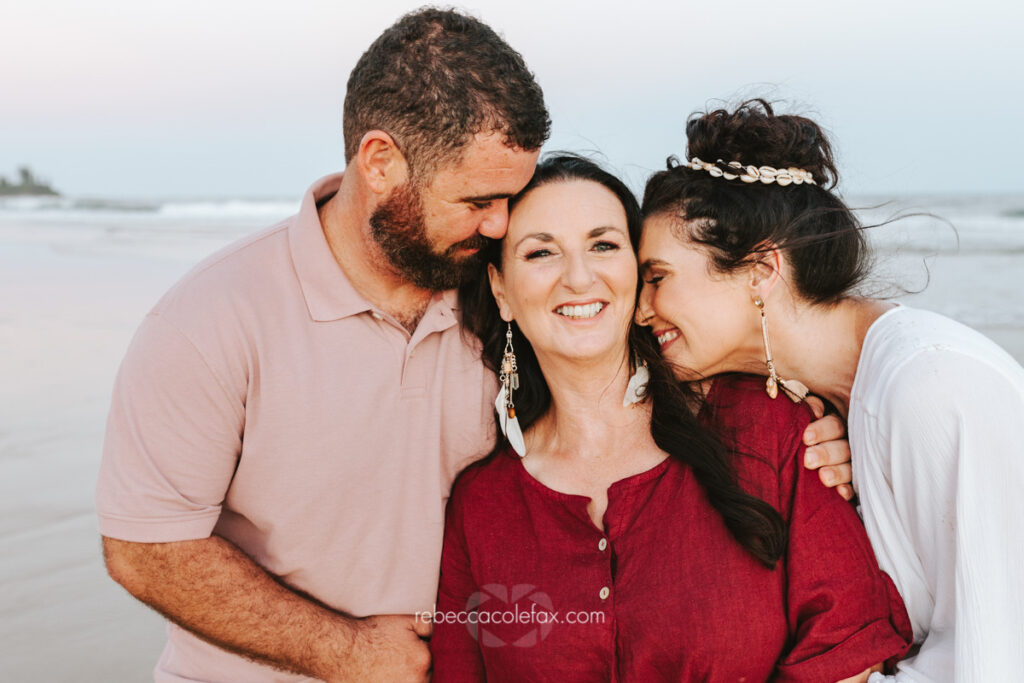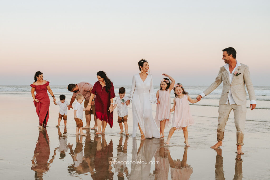 Elopement photography Sunshine Coast captures something that a full wedding rarely can. Just the two of them. The kids. The beach. A bouquet. Vows said quietly to each other in the kind of light that only arrives for about forty minutes on a clear afternoon and then disappears completely.