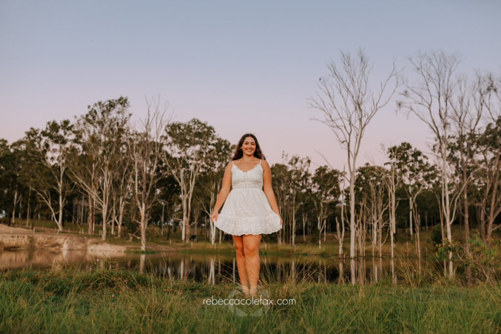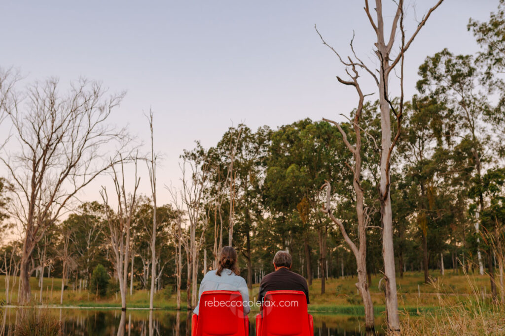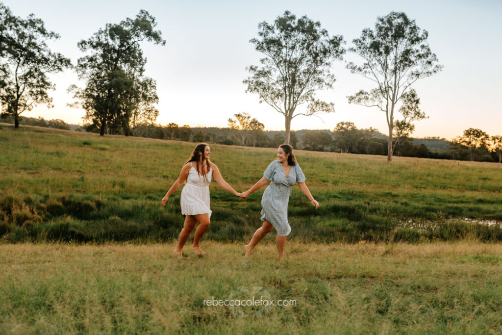 Family photographer Noosa hinterland sessions look nothing like a beach session and that is entirely the point. Golden paddocks, tall gum trees, a dam catching the last of the afternoon light. The kind of landscape that the Sunshine Coast does beautifully and that most photographers never take their clients to.