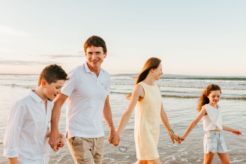 This family session had everything. Soft yellow and white against the pale sand, siblings lying together laughing, piggybacks in the dunes and that whole family walking through the shallows as the sun dropped behind the horizon. Every image tells a part of their story from that particular holiday, at that particular time in their lives.