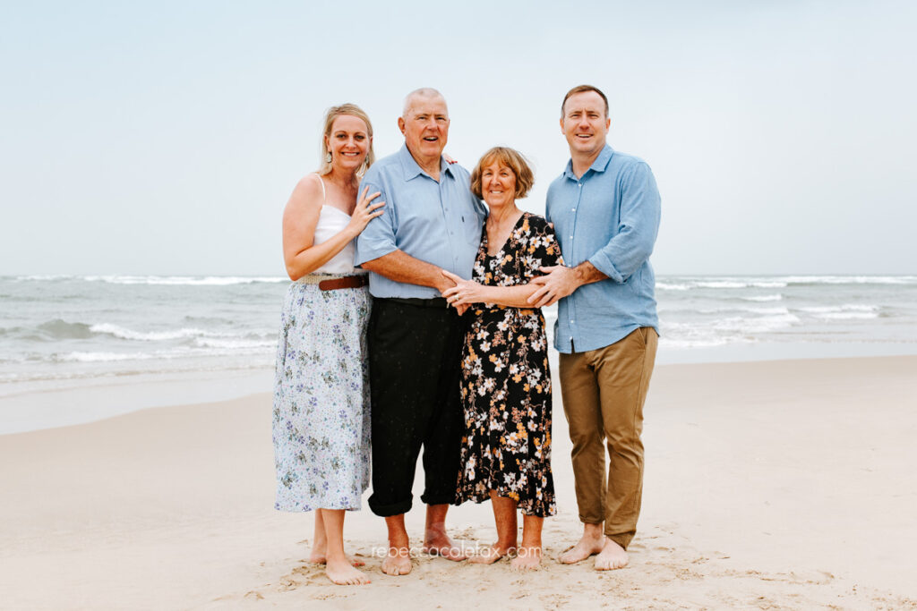 This family gathered on the Sunshine Coast on an overcast afternoon. The soft grey sky, the pale sand, the wide open beach. Three generations together in one place, which happens less often than anyone would like and means more than anyone says out loud.