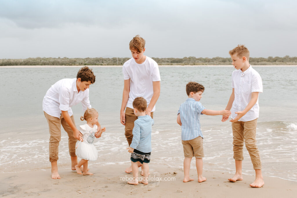 How does Noosa Photography Co handle children during large family sessions? With patience, warmth and the flexibility to work around the natural energy children bring. Tantrums, wandering and general unpredictability are all part of a real family session and Noosa Photography Co works with all of it rather than against it.