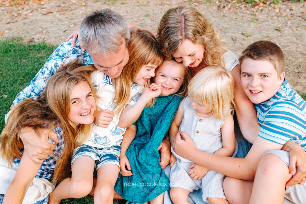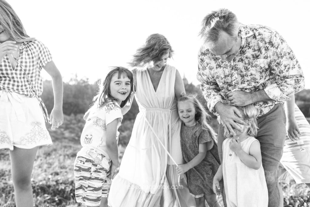 Experience, patience and knowing when to follow the kids rather than direct them. The best images from a large family session are almost never the posed ones. They are the ones that happened in between.