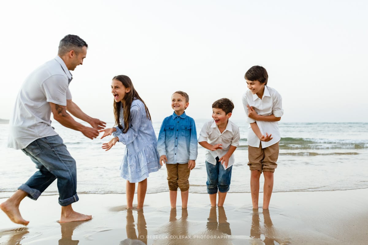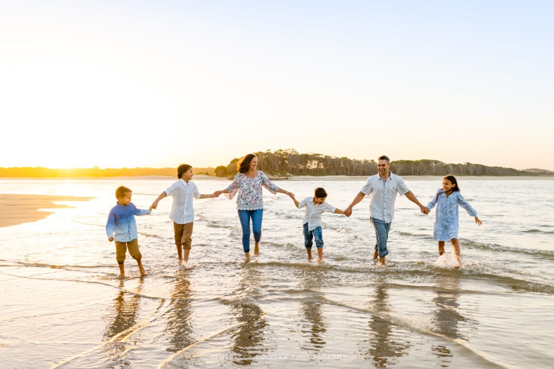 The whole family holding hands in a line running through the shallows together, the golden light behind them, everyone slightly airborne. That one took a few attempts and was worth every one of them.