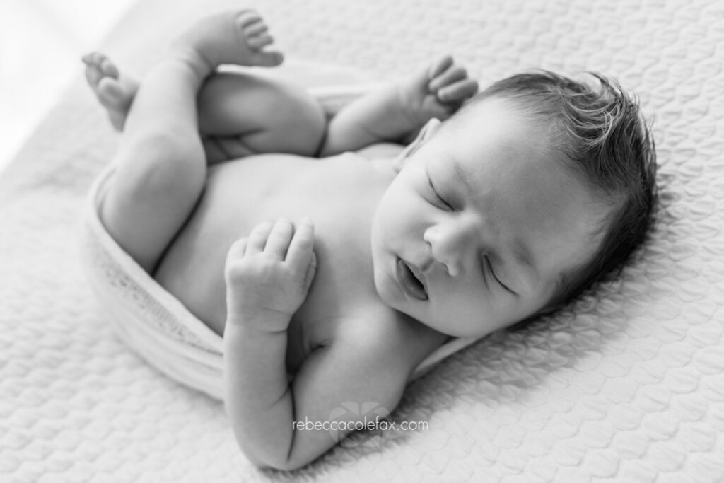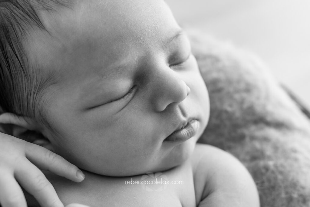 The black and white shots are not just a filter. The close ups of tiny fingers and profiles are not luck. Every frame is a deliberate decision made by someone who has photographed hundreds of newborns and knows exactly what they are doing.