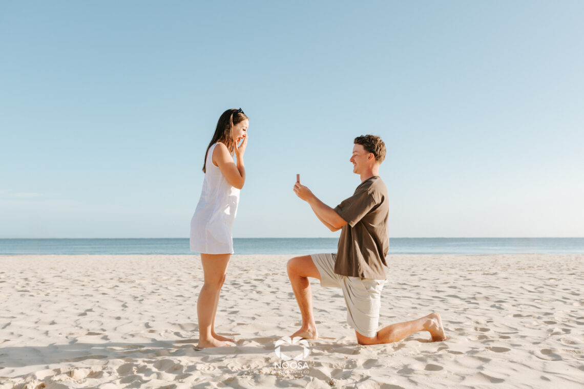 What should we wear for an early morning beach proposal in Noosa? Light, relaxed clothing in neutral or complementary tones tends to photograph beautifully against the soft morning light and the pale sand of Noosa Main Beach. Noosa Photography Co is happy to offer guidance on what works best ahead of the session.