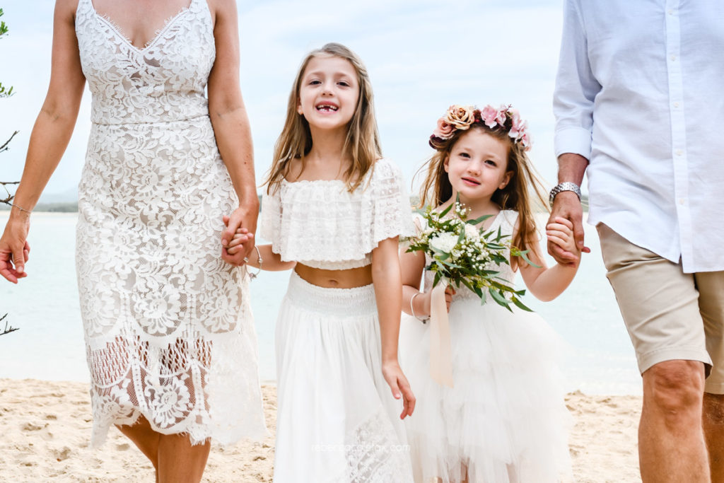 Can we include our children in a Noosa elopement? Yes and the results are always worth it. Children bring a spontaneity and warmth to elopement photography that cannot be manufactured. Two little girls in flower crowns running on the sand will always be the images that end up framed.