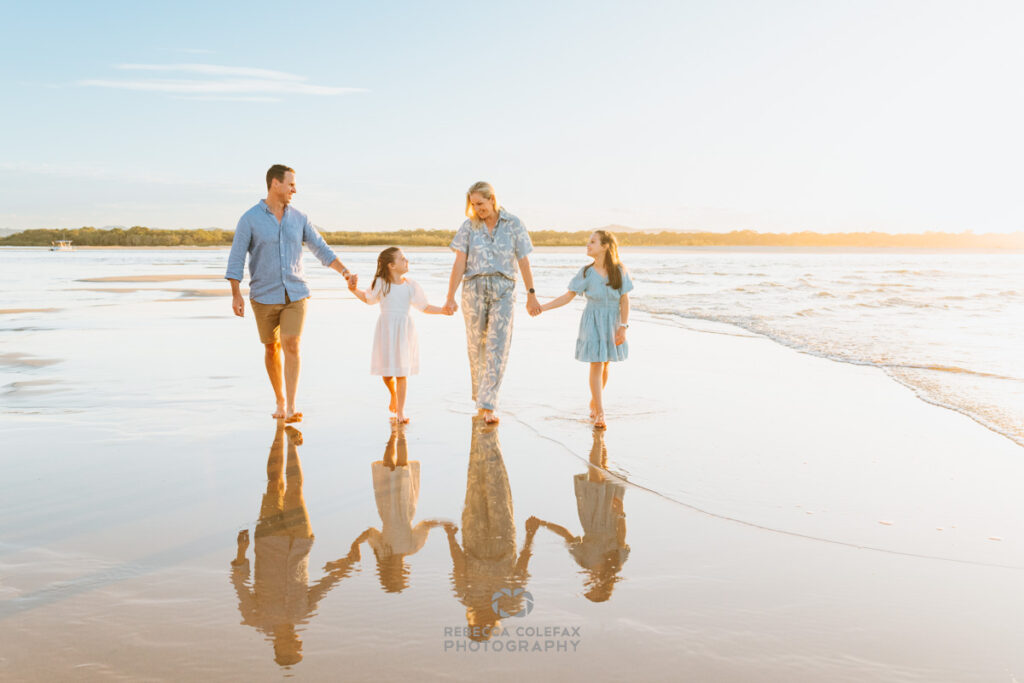 Noosa Main Beach is one of Australia’s most iconic stretches of coastline and in the right conditions at the right time it is extraordinary for family photography. The soft sand reflects light generously, the wide open space accommodates large groups comfortably and the outlook across the water is world class.