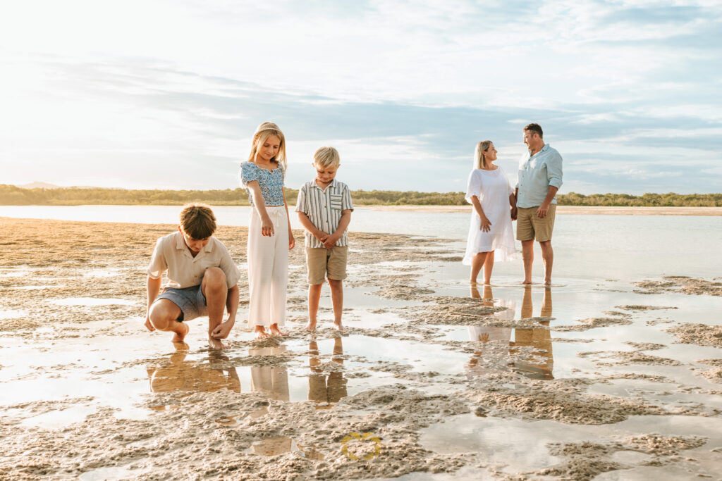 The Noosa River mouth is one of the most rewarding family photography locations on the entire coastline when the conditions are right. The calm water reflects the sky in a way that adds extraordinary depth and softness to every frame. The combination of water and lush natural surrounds provides genuine variety within a compact area and the light here behaves in a way that is genuinely unique to this particular corner of Noosa.