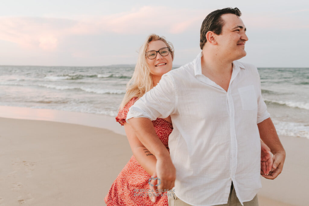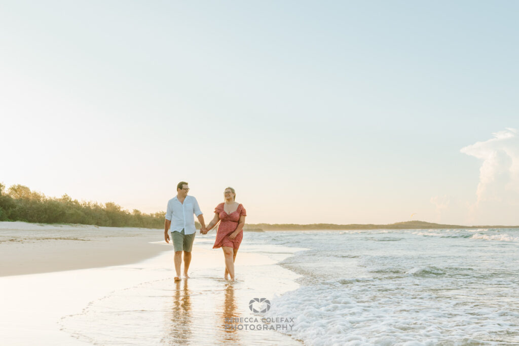 On the day she arrived thinking she was there for photos. The session began exactly as any couples session would, relaxed, natural, the two of them moving through the beach together while the afternoon light did what Noosa light does at that time of day. Nothing felt different. Nothing gave it away.