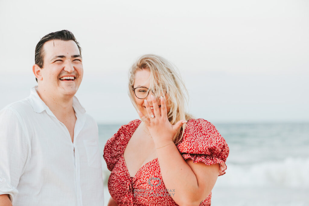 Hiding a proposal inside a couples session removes every variable that makes a surprise proposal on a public beach difficult. There is no need to invent a reason to be somewhere. There is no awkward walk towards a setup she might see too early. She is already relaxed, already enjoying herself and already in the hands of a photographer she trusts to direct her naturally.