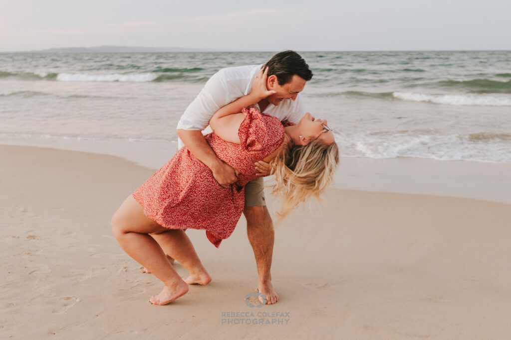 A Noosa Main Beach engagement session that begins as one thing and becomes something else entirely is a very particular kind of privilege to be part of. She thought they were there for a couples shoot. He had other plans. The whole thing was coordinated quietly in the lead up, a gentle nod at the right moment, a careful guide to where she was standing with her back to him, and by the time she turned around he was already on one knee with the ring in his hand.