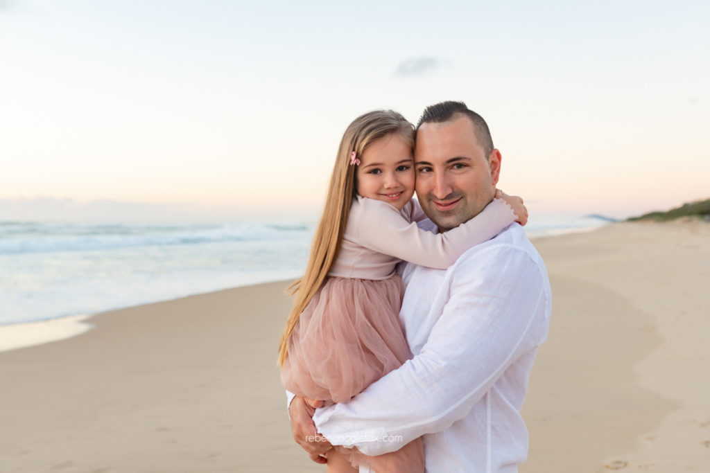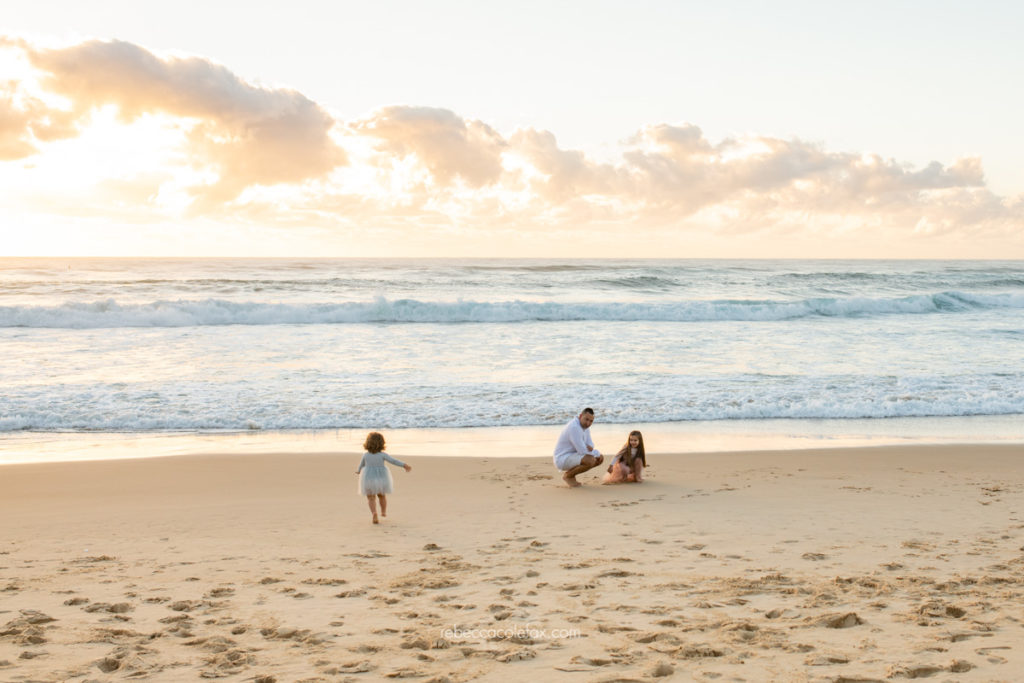 What is the best time of day for a maternity and family session in Noosa? Golden hour, the hour before sunset, works beautifully for family sessions. The warm light is flattering, the beach is quieter and children tend to respond well to the freedom of a wide open beach at that time of day.