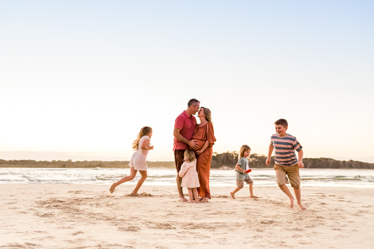 Can we include all of our children in a maternity session? Absolutely. Noosa Photography Co regularly photographs families with multiple children during maternity sessions and has the patience and experience to make it work beautifully regardless of ages or temperaments. The more children the more genuine moments there are to capture.