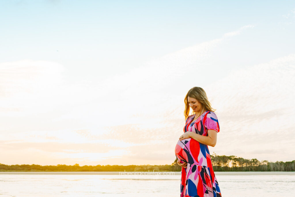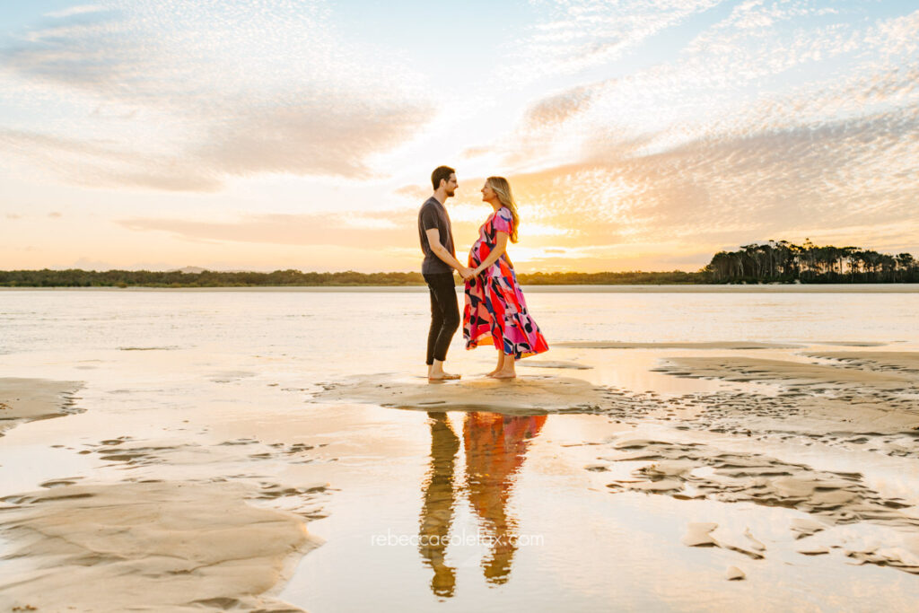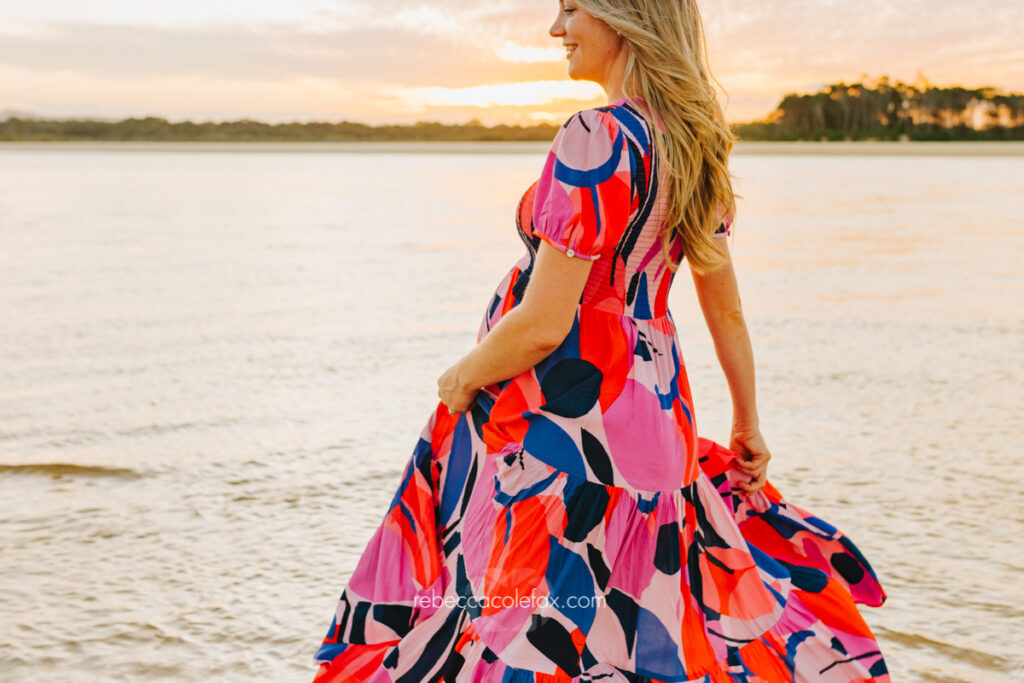 Can mum wear something bright or patterned for a maternity session? Absolutely. The best outfit is always the one that makes mum feel beautiful and confident. A bold print or a bright colour can look extraordinary against a Noosa beach backdrop especially at golden hour. Wear what feels like you.