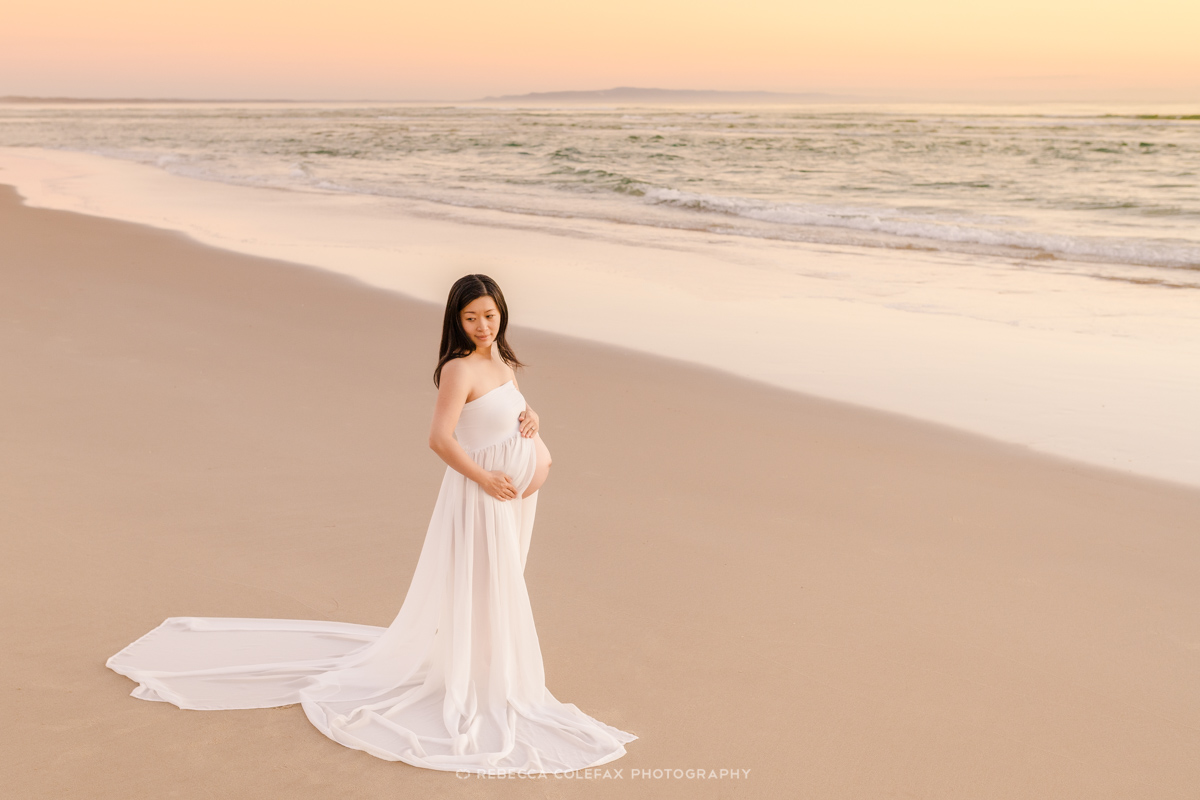 Noosa maternity photos at Main Beach are always beautiful. But occasionally a client arrives with a vision so specific, so considered and so detailed that the session becomes something else entirely. This was one of those sessions.