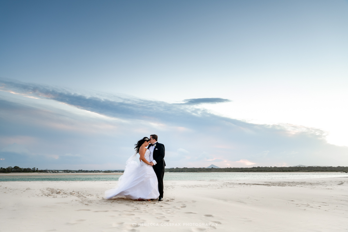 And then, with just enough time before the reception, a quick drive to the beach. The two of them on the sand in full wedding attire with Mount Coolum sitting perfectly on the horizon behind them and the whole sky turning. That image alone is worth the detour.