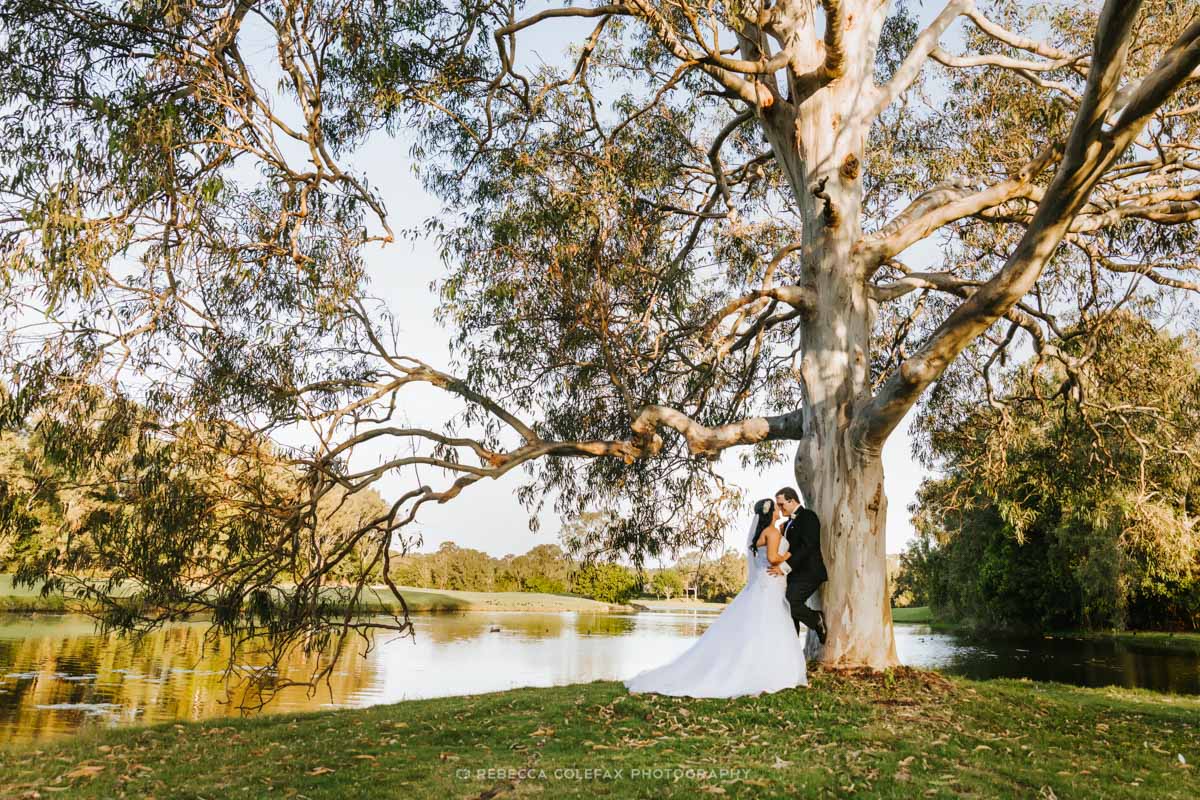 What makes Noosa Springs Golf Resort a great wedding venue? The variety of locations within the one property is unmatched on the Sunshine Coast. Garden ceremony space, pond and bridge, ancient eucalyptus trees, rolling fairways, palm tree lined cart paths and easy access to the beach for couple portraits. Noosa Photography Co knows every corner of this property and exactly where the light falls at every time of day.