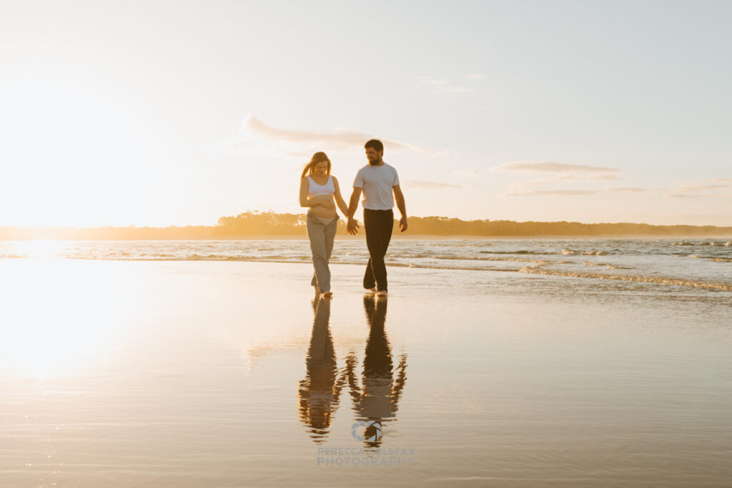 Why is sunset the best time for a maternity session in Noosa? The hour before sunset gives the softest, warmest and most flattering light of the day. On Noosa’s beaches that light reflects off the water and the wet sand creating a natural glow that is almost impossible to replicate at any other time. It is also quieter on the beach which makes for a much more relaxed and intimate session.