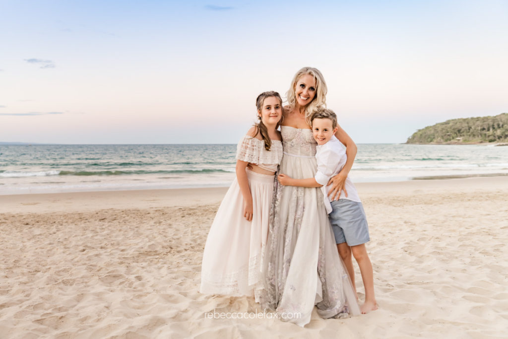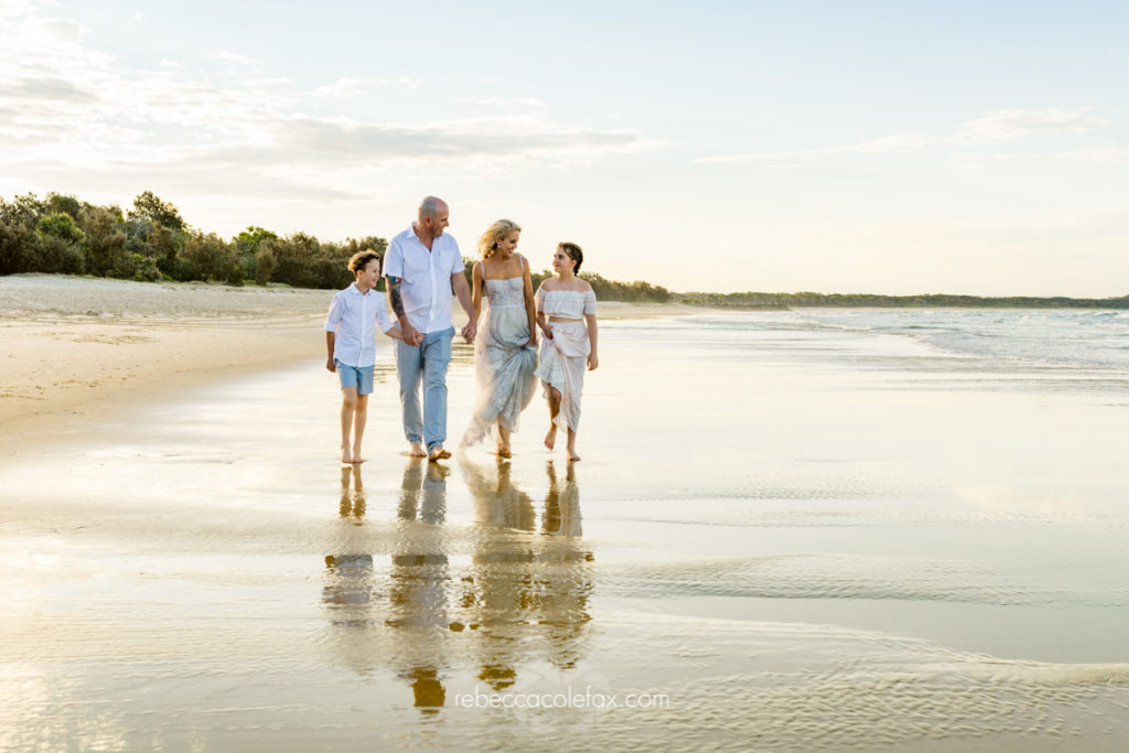 From Laguna Grove the family made their way to Noosa Main Beach as the afternoon light turned gold. The four of them walked the boardwalk together, Lesa’s dress trailing behind her, Izzy beside her, Luca and Gareth ahead and the whole frame looked like the kind of thing you find in a drawer twenty years later and have to sit down.