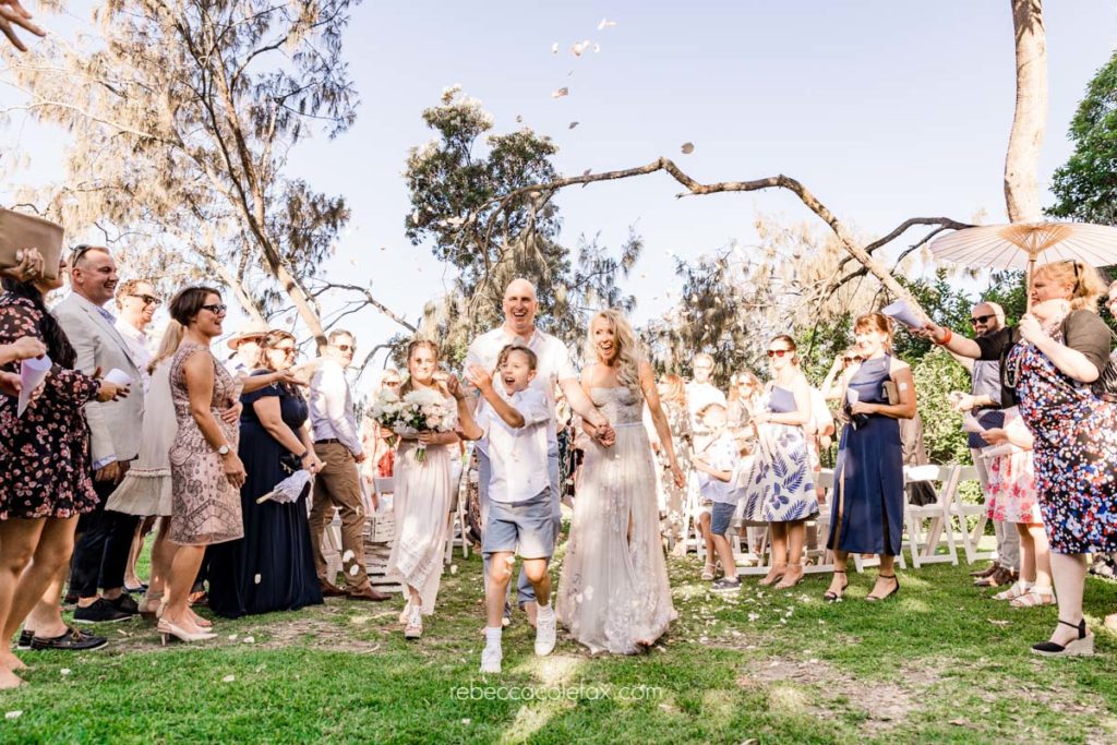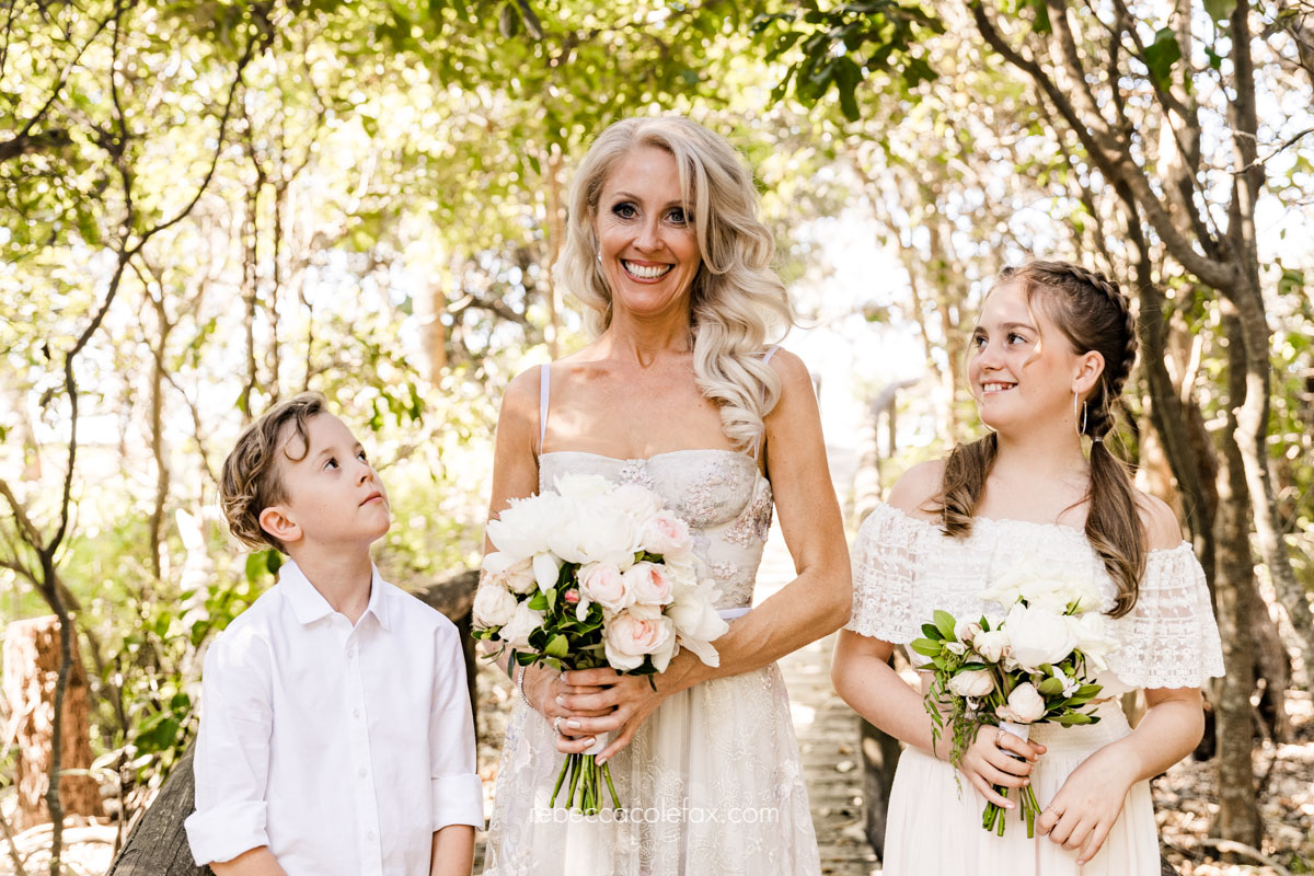 When Lesa and Gareth first crossed paths at a New Year’s Eve party fifteen years before their wedding day, nobody could have mapped the road that would lead them here. Through the years, the kids, the long engagement and a gondola proposal on the Noosa River, they arrived at Laguna Grove ready to make it official. The people they love most were waiting in the rows of white chairs. Izzy and Luca were in the bridal party. Grandma Phyllis was in the front row.