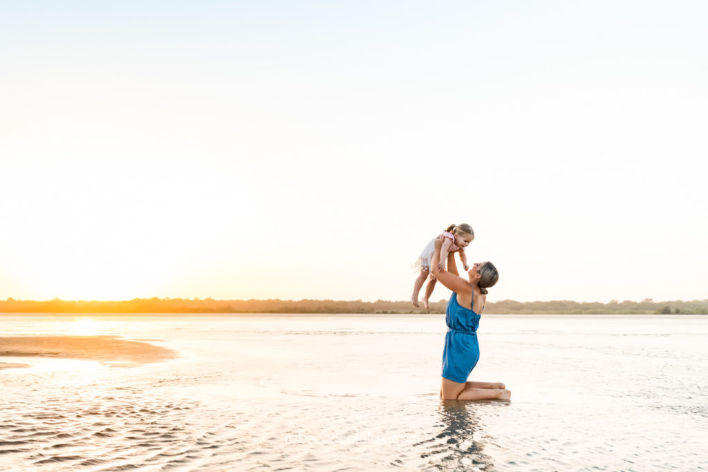 This was a mother and daughter beach session gifted by a friend and the results speak for themselves. Just the two of them on a wide Noosa beach as the light went warm and low. The little girl at the edge of the water. Mum lifting her up against the sunset. Both of them laughing with the whole beach behind them.