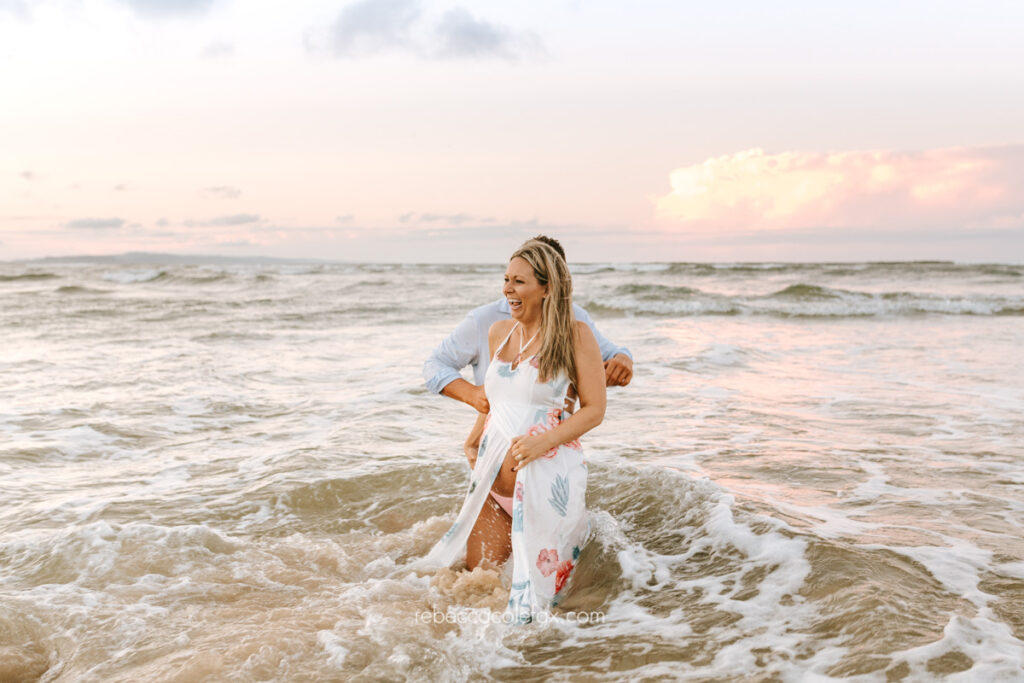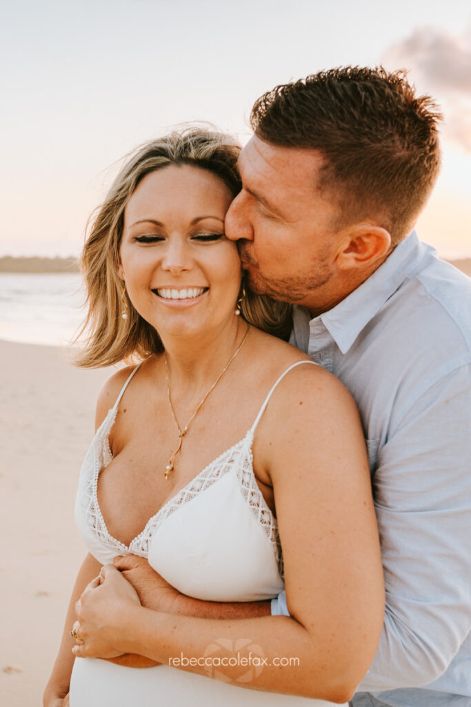 What should we wear for a pregnancy photoshoot in Noosa? Simple, fitted clothing that shows the bump works beautifully. Soft neutrals, white linen and flowing fabrics work well at the beach. For hinterland sessions earthy tones and relaxed layers can look stunning. Noosa Photography Co sends all clients a full styling guide before their session.