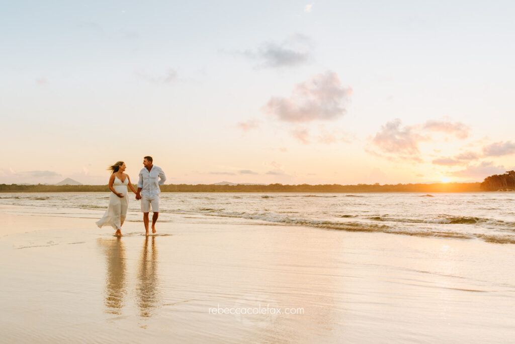Some couples want the wide open beach, waves at their feet and a sky full of colour. Some want something quieter, softer, more intimate. Some arrive with a toddler who needs to run between shots and a partner who has never been in front of a camera in their life. Some have done this before and know exactly what they want. Noosa Photography Co works with all of them.