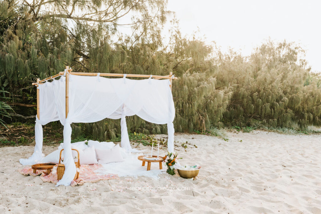 A styled setup is not mandatory but it makes a significant difference to both the experience and the images. It gives the person being proposed to a sense of occasion from the moment they arrive and gives the photographer a clear scene to work with. Noosa Photography Co has excellent styling contacts across the Sunshine Coast and can point you in the right direction.