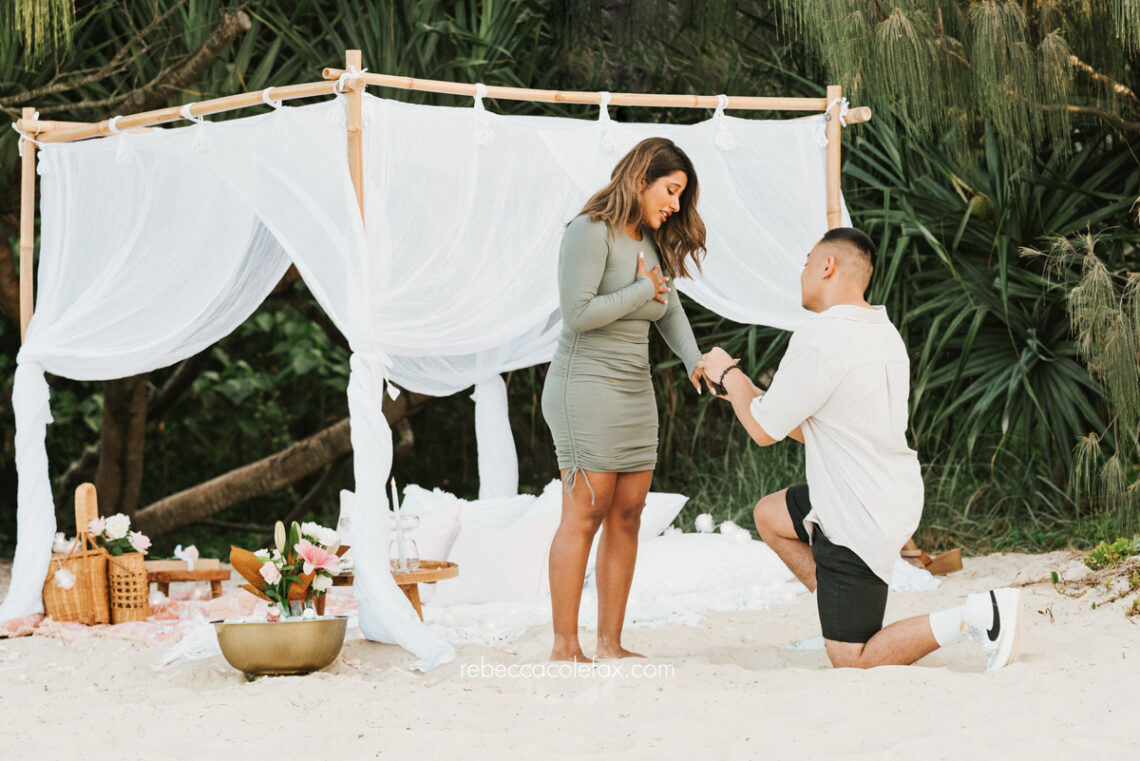 A styled setup is not mandatory but it makes a significant difference to both the experience and the images. It gives the person being proposed to a sense of occasion from the moment they arrive and gives the photographer a clear scene to work with. Noosa Photography Co has excellent styling contacts across the Sunshine Coast and can point you in the right direction.
