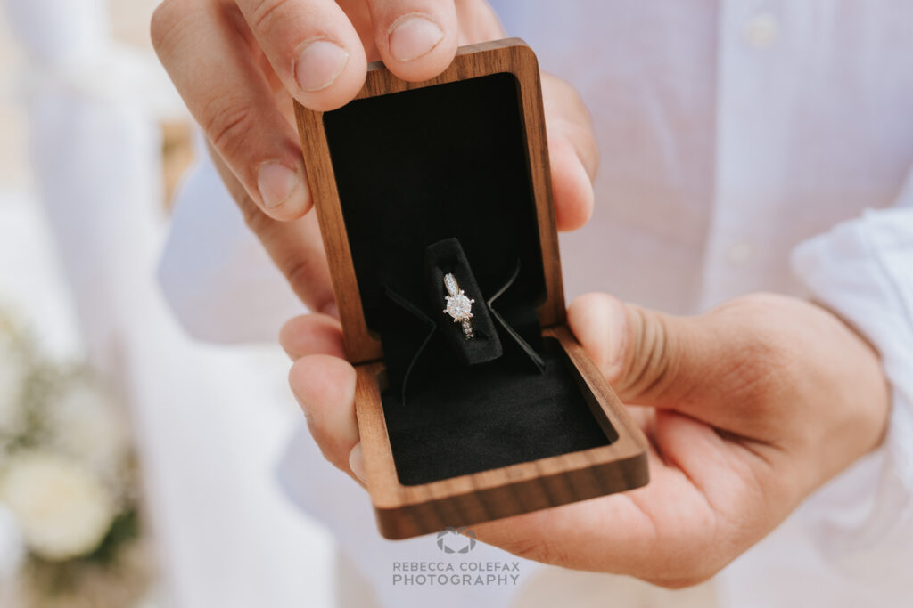 He opened the ring box. She said yes. The engraved wooden keepsake he held in those first frames had their names and their date on it. A date that now means something entirely different to both of them.