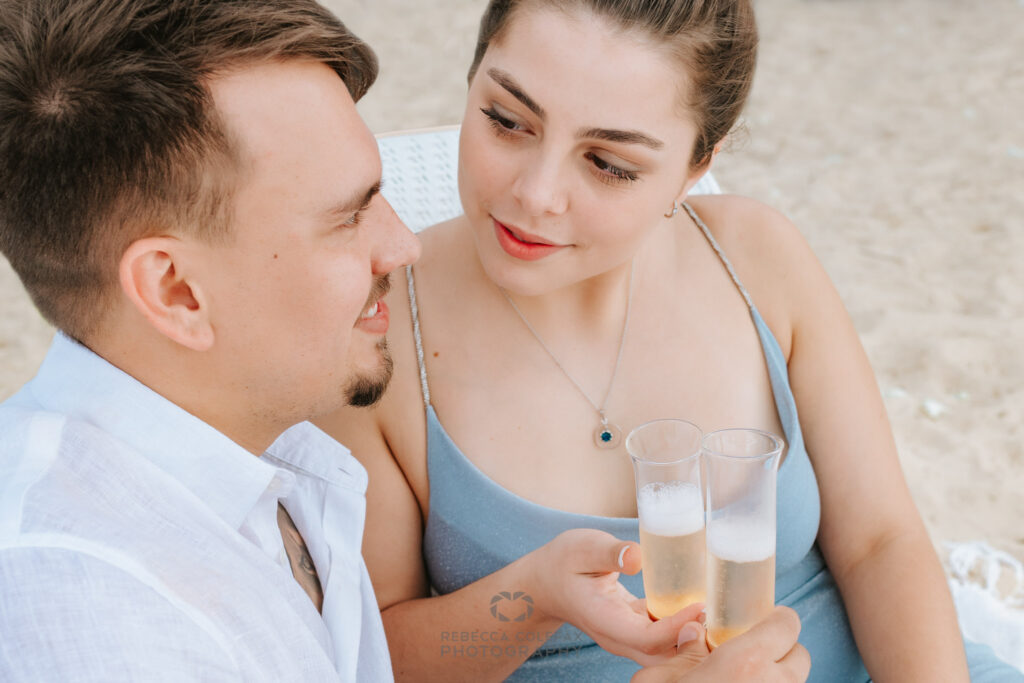 Can we have a styled setup for a Sunshine Coast beach proposal? Absolutely. A styled setup with a canopy, florals, champagne and personalised details transforms a proposal from a moment into an experience. Noosa Photography Co has extensive experience working alongside styling teams to ensure every element of the setup and the photography come together seamlessly.