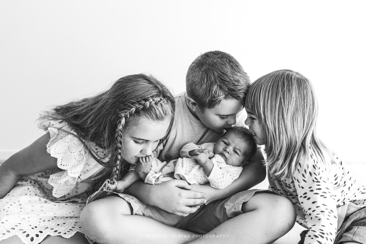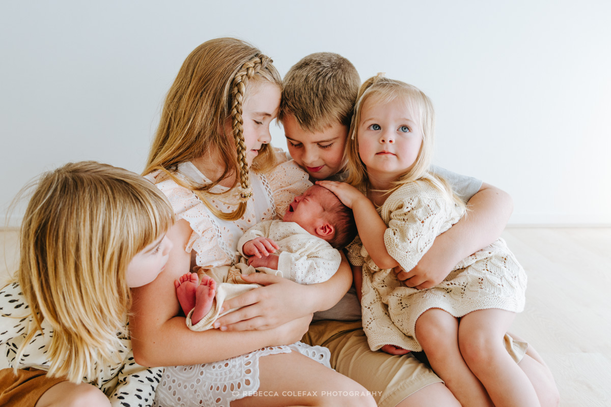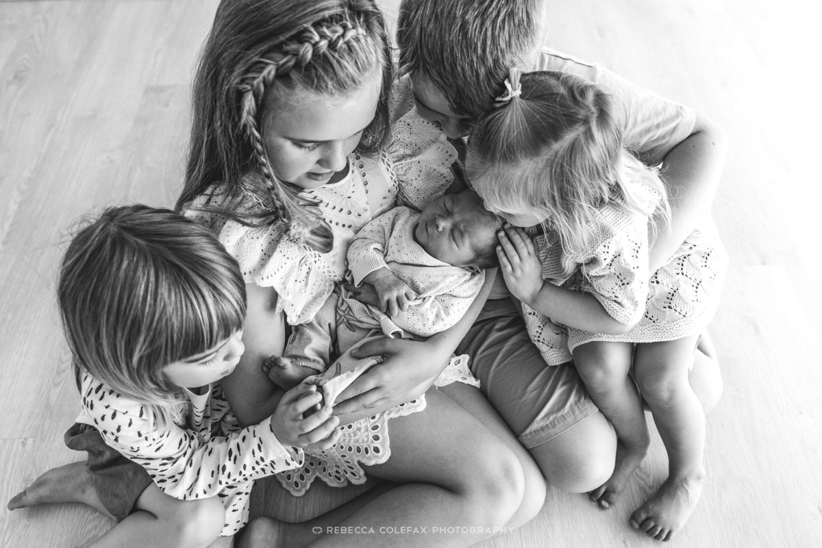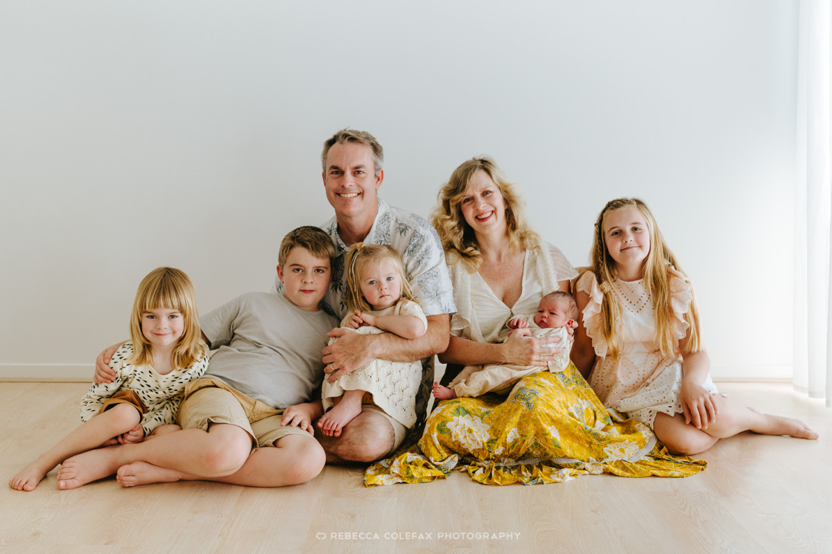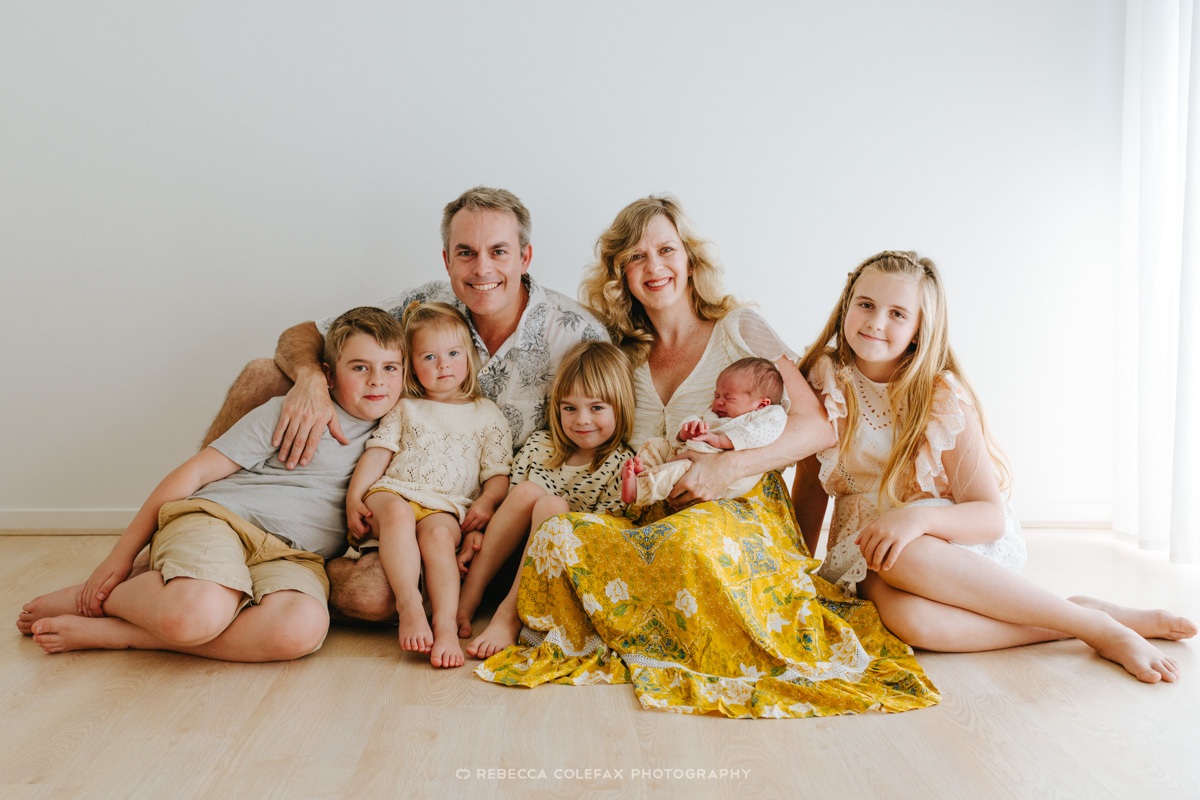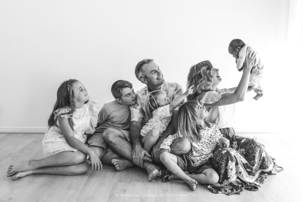 Sunshine Coast family and newborn photographer sessions don’t get much more special than this. Two parents, five kids and a brand new baby joining the tribe. Seven people, one family, and a whole lot of love to capture.
