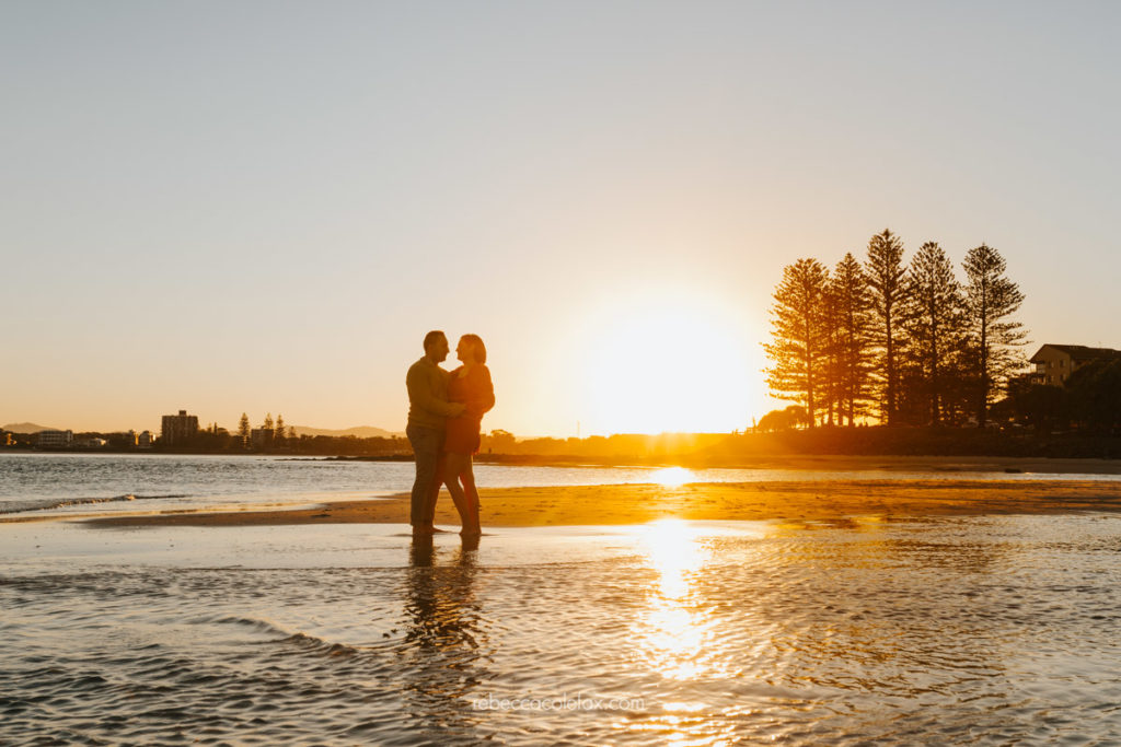 Is Caloundra a good location for a family photo session on the Sunshine Coast? Yes. The tidal flats at Caloundra work particularly well for larger groups and golden hour sessions. The calm shallow water creates beautiful reflections and the open space gives everyone room to move naturally. Like all outdoor locations the conditions matter, so timing and planning are discussed carefully before every session.