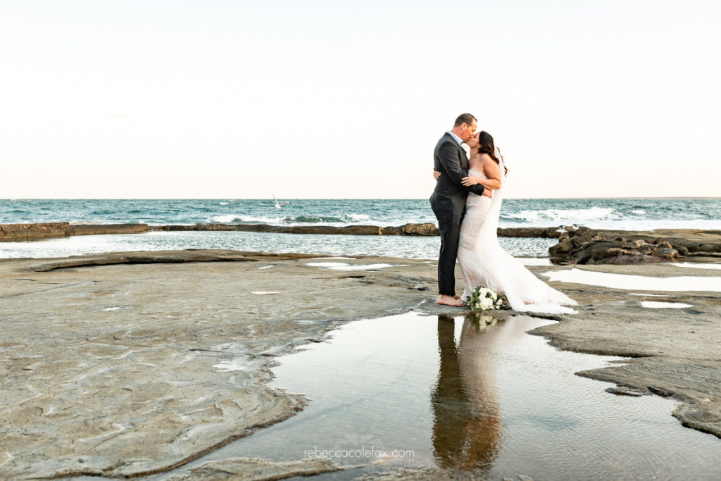 What makes Caloundra a good location for wedding photography? Caloundra offers rocky headlands, tidal rock platforms, pandanus palms and ocean views that are completely different in character to the beaches further north. The flat rock shelves at low tide create natural reflection pools that produce exceptional couple portraits and the headland ceremony locations have a dramatic coastal backdrop that is hard to match anywhere on the Sunshine Coast.