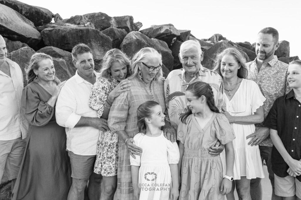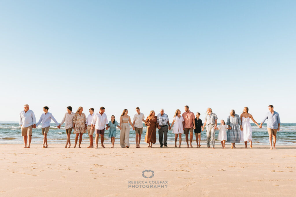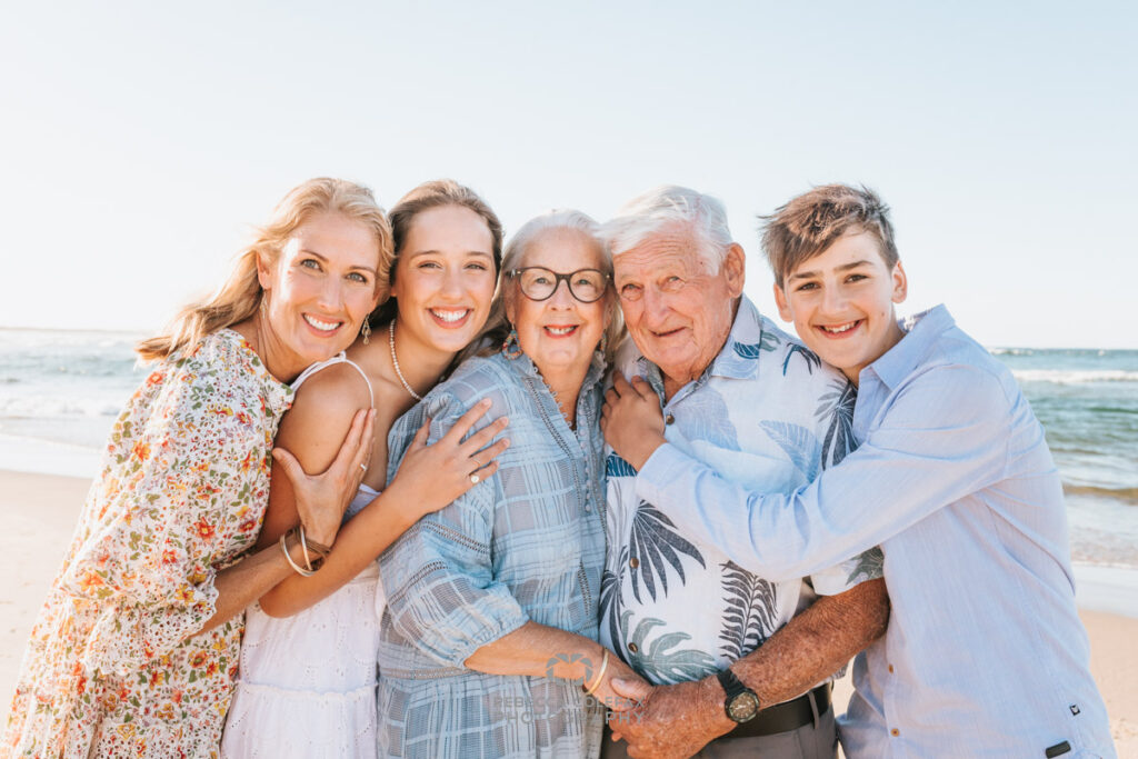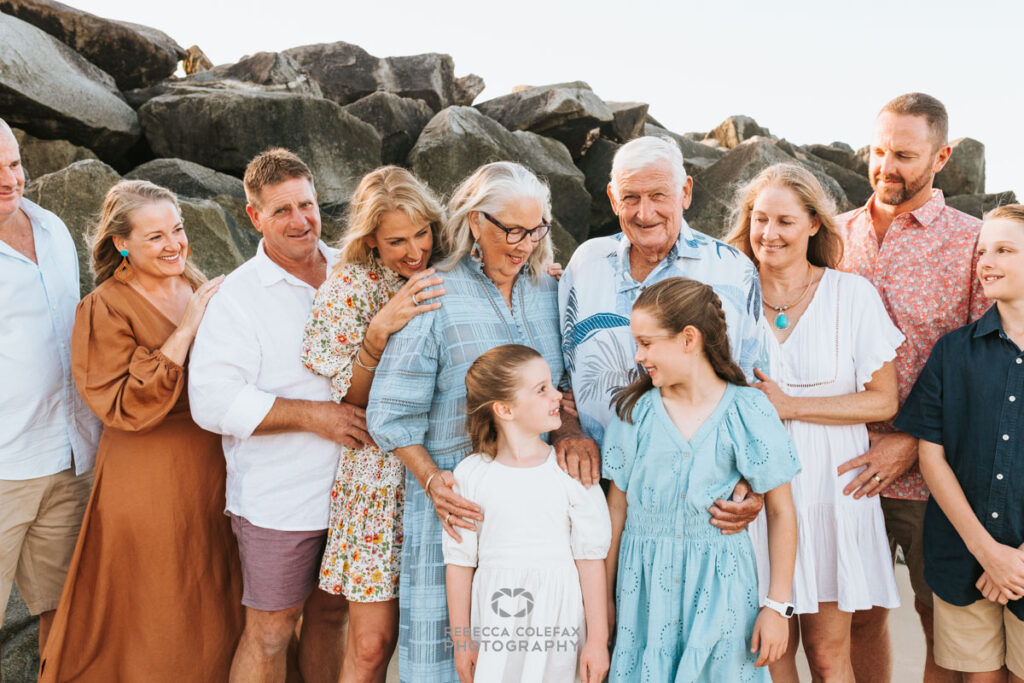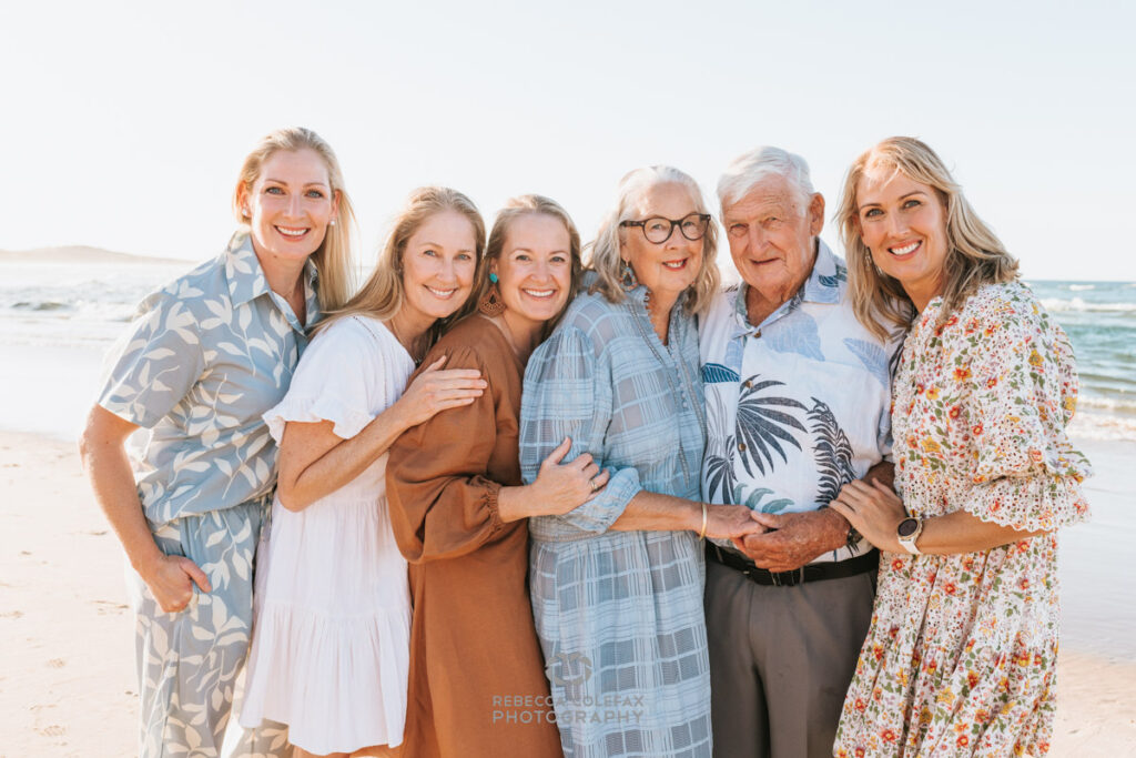 This extended family travelled from across the country for their Noosa holiday and booked a session with Noosa Photography Co to mark the occasion properly. Multiple generations, warm earth tones against that golden Noosa light, the whole group together and every smaller combination within it. Grandparents with grandchildren. Siblings together. Couples in their own quiet moment. Individual portraits that capture each person exactly as they are right now.