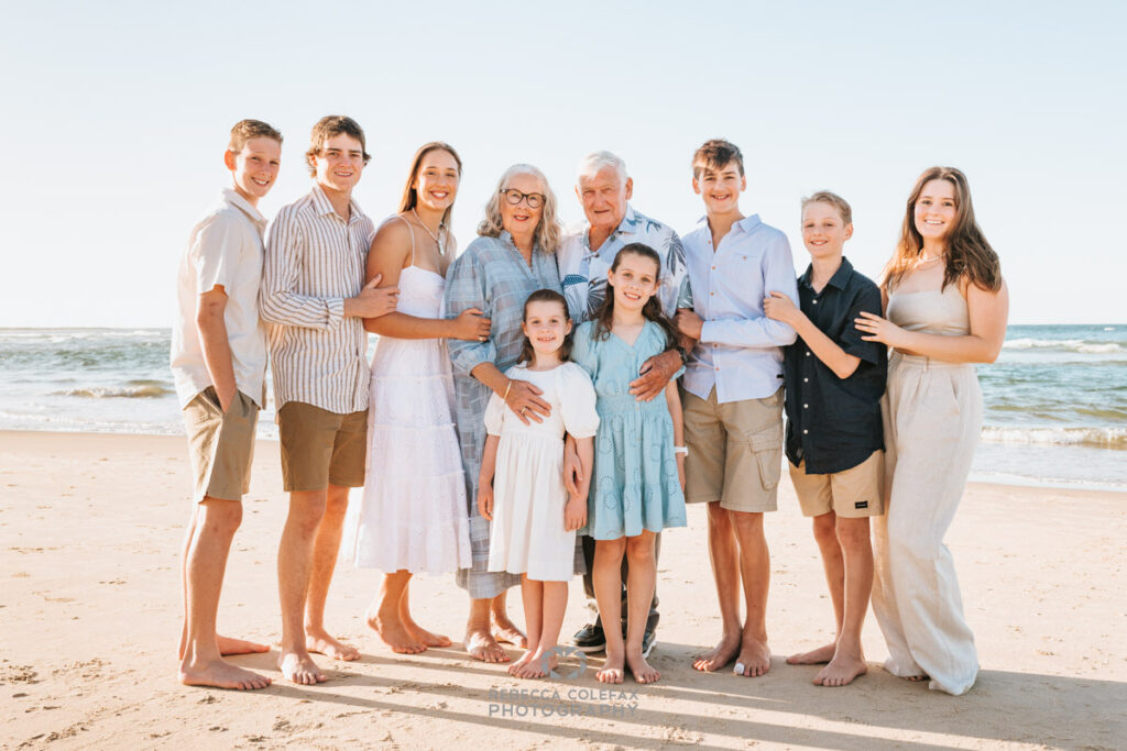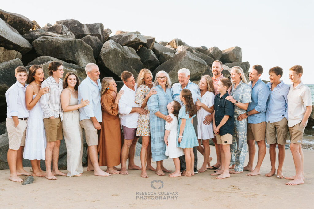 Extended families and multi generational reunions. Couples and anniversary sessions. Milestone birthdays from 40th to 90th. Surprise proposals and engagement shoots. Babymoons and maternity sessions. Groups and friend reunions. Holiday family portraits that capture the kids at this exact age on this exact beach.